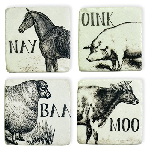 Boston International Resin Coasters, Square-Shaped, Set of 4, Farm Animals