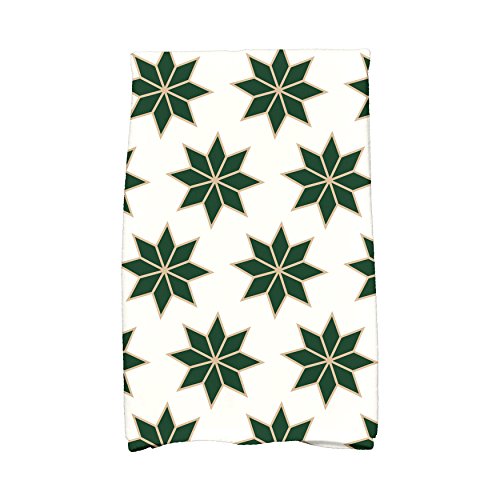 E by design KTHGN668GR26TA6 Christmas Stars 2 Holiday Geometric Print Kitchen Towel, 16" x 25", Dark Green