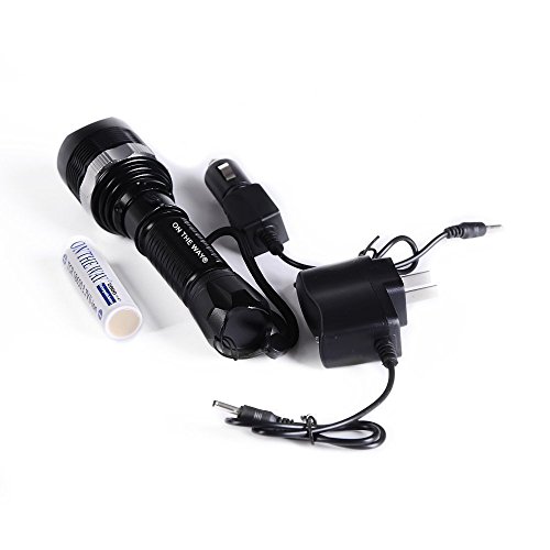 ON THE WAY1000 Lumen Rechargeable Zoomable XM-L 8066-T6 LED Flashlight Torch with Car/wall Charger and 18650 3.7V Battery