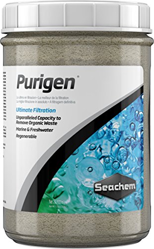 Purigen is a premium synthetic adsorbent that is unlike any other filtration product. It is not a mixture of ion exchangers or adsorbents, but a unique macro-porous synthetic polymer that removes soluble and insoluble impurities from water at a rate and capacity that exceeds all others by over 500%. Purigen controls ammonia, nitrites and nitrates by removing nitrogenous organic waste that would otherwise release these harmful compounds. Purigen's impact on trace elements is minimal. It significantly raises redox. It polishes water to unparalleled clarity. Purigen darkens progressively as it exhausts, and is easily renewed by treating with bleach. Purigen is designed for both marine and freshwater use. This product is sold by volume. Cited weight is minimal weight.Feature