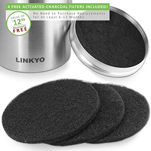 Odor Free - A thick activated charcoal filter absorbs and traps odors inside the canister leaving your kitchen smelling fresh and clean (4 filters included)