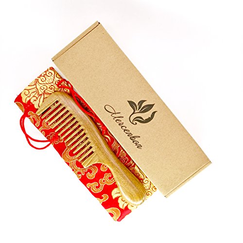 Mercenbon Anti-static Sandalwood Wooden Comb,Natural Aroma Handmade Hair Combs For Kids Women and Men With Carrying Pouch