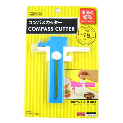 -. Binding : Office Product -. Brand : Daiso Japan -. Color : Blue-White -. EAN : 4984355149743 -. Feature : Accurately cuts or marks precise circles from 5mm to 75mm radius (15cm diameter) / Easy to cut out perfect circles / Great cutting and marking tool for professional, school, home or hobby use / Color: Green, Blue & Pink\xa0 - Allow us to choose a color for you -. Label : Japan -. Manufacturer : Japan -. PackageQuantity : 1 -. ProductGroup : Office Product -. ProductTypeName : OFFICE_PRODUCTS -. Publisher : Japan -. Studio : Japan -. Title : Daiso Japan Perfect Circle Compass Cutter