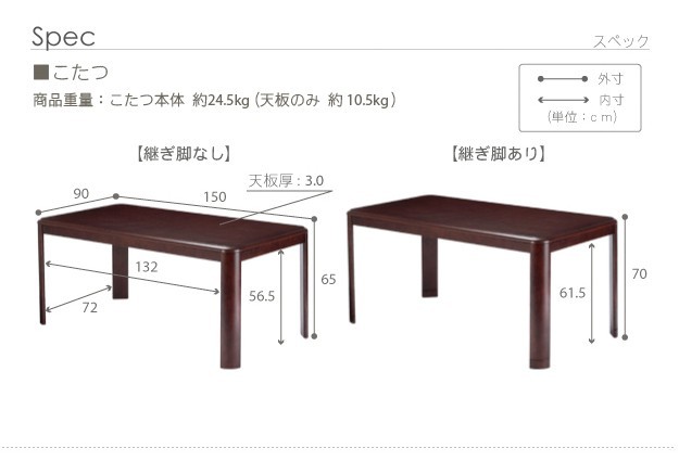 サイズ(cm):テーブル-幅150x奥行90x高さ70(65)・約24.5kg