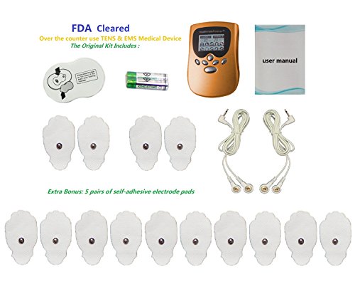 - Feature : WHAT'S IT? - HealthmateForever tens unit is the best PAIN RELIEF device by blocking the pain signal from nerves. This unit comes with belt clip, which makes it portable, you can stimulate your nerves and muscles and relax your body-anytime anywhere. / FEATURES - 10 preprogrammed massage modes: Neck, Shoulders, Wrist, Back, Elbow, Hand, Hip, Knee, Ankle, and Foot. 10-80 minute timer, you can pause with "T" button. Easy to read animated backlit LCD Display. Allows 4 pads to be used at the same time. Power by 2 AAA batteries. / FEATURES - Independent dual output design, A&B two independent outputs have independent controls, working as two machines in one. 40 levels of adjustable intensity/strength (20 per output), you can use "+" button increases intensity or "-"button decreases intensity of mode. / WHY CHOOSE US? - HealthmateForever is the #1 brand for the pain relief device, which has exceed 50 kinds of Tens Unit on Amazon; More than 10 thousand 5 stars customer reviews in all on Amazon; High quality - doctor recommended; Portable and easy to use; 100 percent drug-free; Safe and effective for home use (FDA cleared & Lifetime Warranty). / EFFECTIVE - This TENS & PMS massager provides effective results. The advanced technology sends out multiple preset electrical therapeutic waves through the electrodes. These waves stimulate the combination of deep tissue pain relief techniques and various muscle movements, relieving muscle tension; this unit is lightweight and portable, you can stimulate your nerves and muscles and relax your body-anytime anywhere; completely drug-free; the large LCD display with new featured backlight shows you at a glance exactly what you need for your targeted mode.