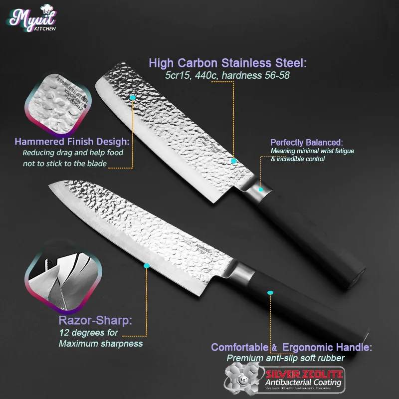 Knife style:Professional Kitchen ultra sharp steel Santoku knife