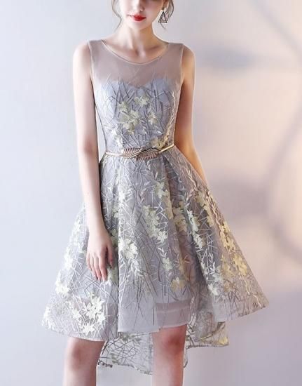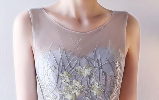 花柄刺繍の、ノースリーブフィッシュテールドレス。