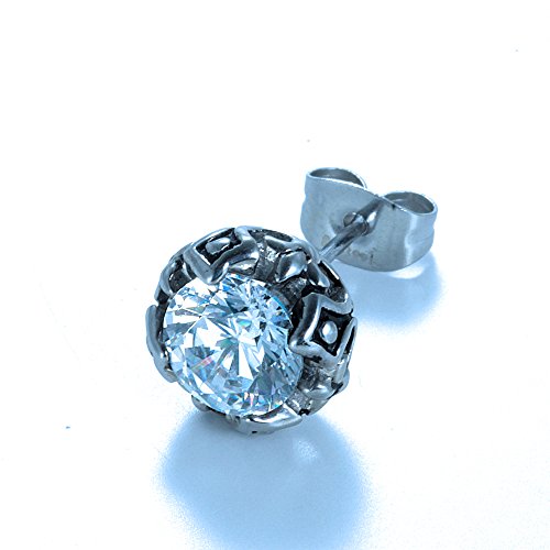 -. Title : Gem Art ( ジェムアート ) ステンレススチール キュービックジルコニア 6mm クラウン (王冠 ) デザイン シングル ピアス クリア
