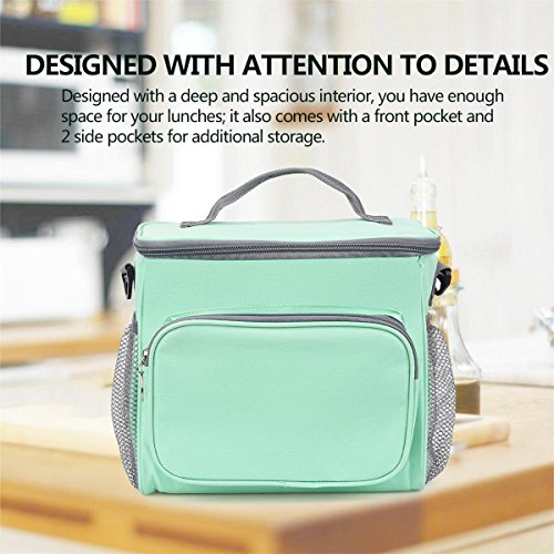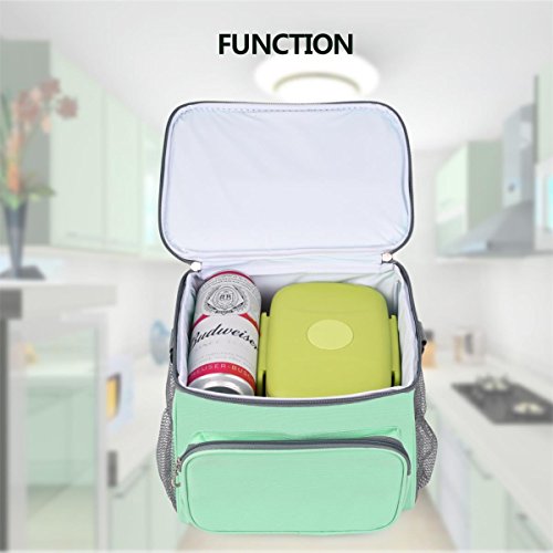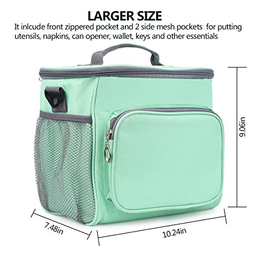 Insulated Lunch Bag Adult Lunch Box Large Cooler Tote Bag for Men, Women, With Adjustable Strap,Front Pocket and Dual Large Mesh Side Pockets by FlowFly(Green)