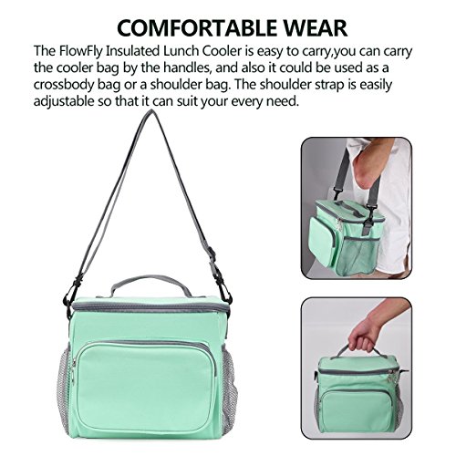 Comfortable Wear:The FlowFly Lunch box is easy to carry with comfort-grip handle and removable shoulder strap.You can carry the bag by the handles, and also it could be used as a crossbody bag or a shoulder bag.