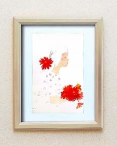 ちひろの可愛らしい絵をセットした色紙額。