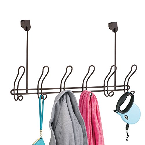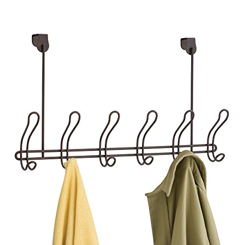 mDesign Over the Door 6-Hook Rack for Coats, Hats, Robes, Towels – Bronze