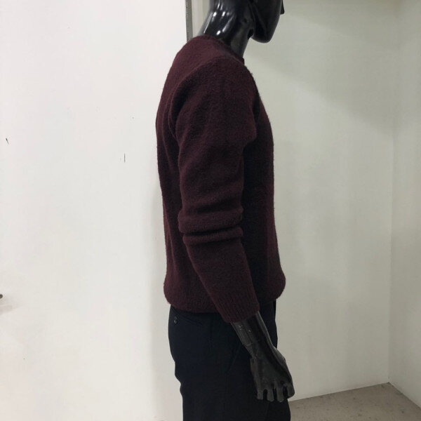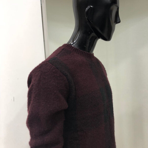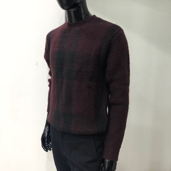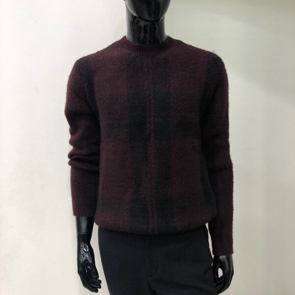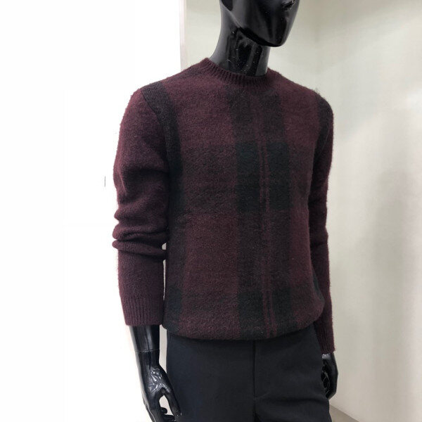 헤어리한 원사를 사용하여 따뜻한 느낌을 주며 앞판 체크 패턴을 사용한 스웨터 입니다.
