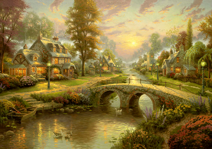 Jigsaw Puzzle Charleston Sunset Rainbow Row 1000Pcs by Thomas Kinkade