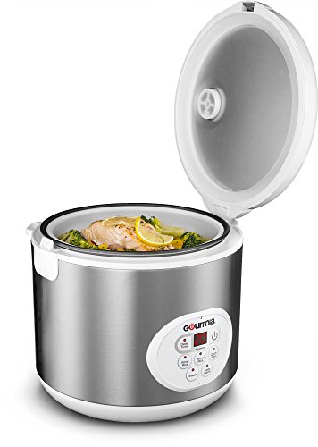 Are you too busy to make home cooked meals? Does cooking feel like a challenge and a struggle? Make cooking mouthwatering and nutritious meals at home easy with this rice cooker from Gourmia. A digital display makes it convenient and easy to cook rice with options for cooking brown and white rice. A 25 minute countdown displays before rice is completely cooked and once the cooking process is complete the keep warm function can be used for up to 10 hours so that you can keep rice hot until it's ready to eat.INCLUDES: