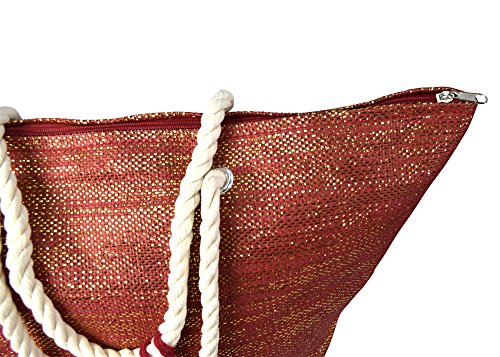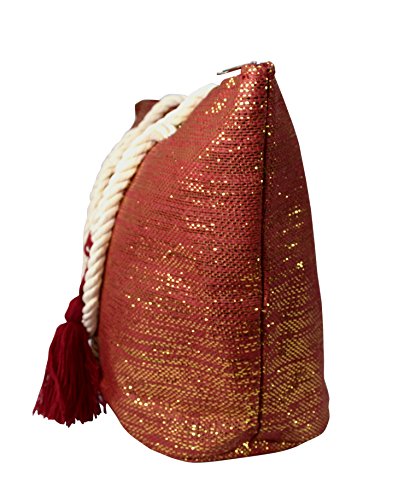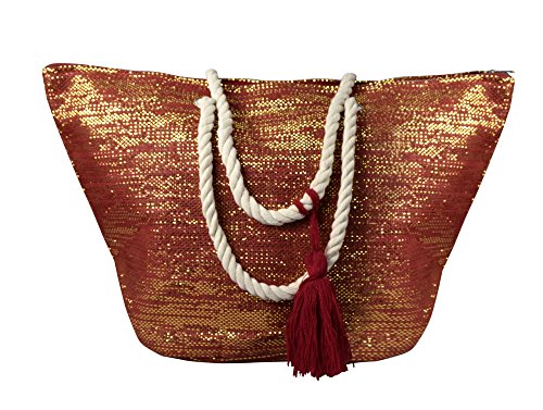 Product Description New by Peach Couture. Peach Couture is a registered trademark. Dial your style up a notch with this beautiful handbag featuring sequin glitters in gold color all over. Easy to manage magnetic button closure so that you dont have to keep opening and closing the zip again and again. Is perfect for shopping trips, vacations, carrying laptops, ipads and also for beach essentials. Can easily fit towels, lotions, etc. Designed and built to last. Product Material: 30% Cotton 70% Polyester. Dimensions: 16" x 15" x 7". 0