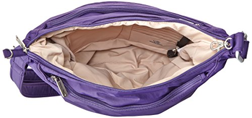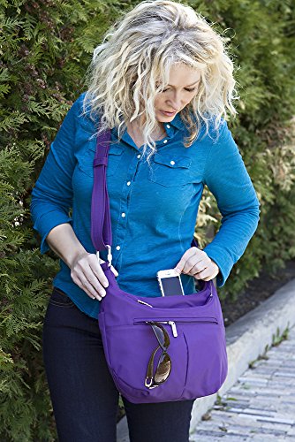 Always loosing your phone in the bottom of your bag? The Classic Slough Hobo bag solves that issue with a quick grab smart phone pocket, never miss a call again! Bag comes with locking main compartment with RFID blocking car and passport slots, slash-proof construction, adjustable, cut-proof strap attaches to post or chair for added safety, additionally there are two front zip pockets and a rear slash pocket. Includes tethered key clip with LED light.