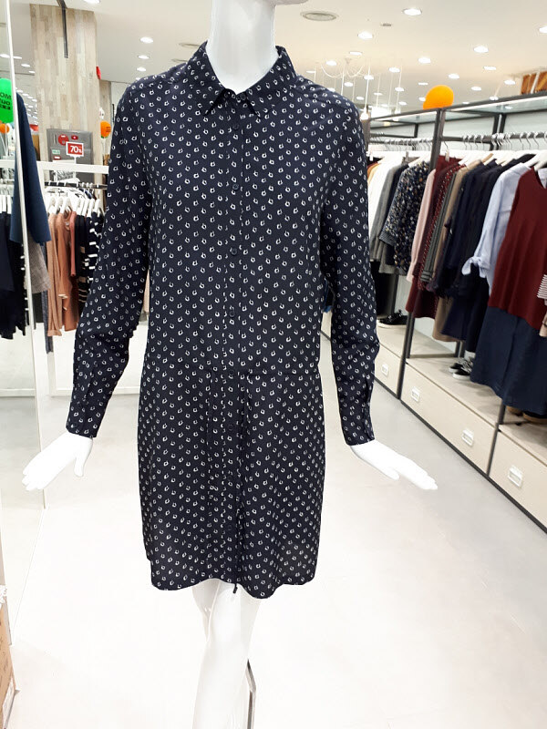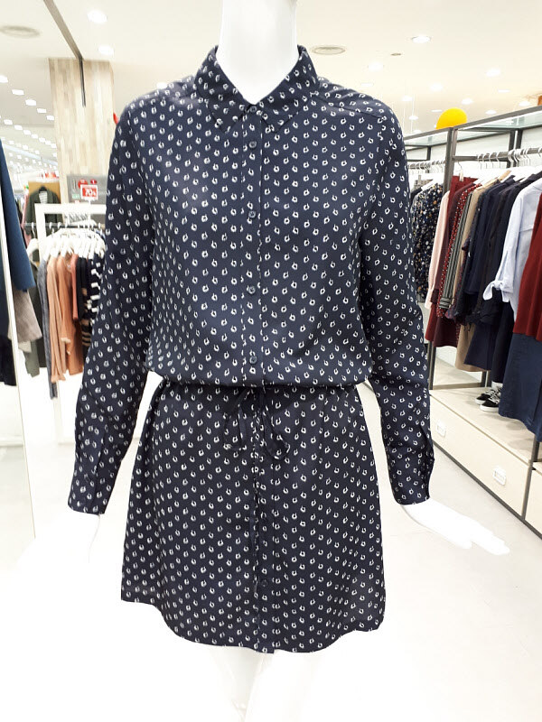 롱셔츠 스타일의 원피스입니다.단추로 오픈 클로징 가능하며 안감은 없어요~