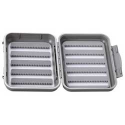 -. Feature : Small waterproof fly box with 10 rows of micro slit foam / Holds up to 235 flies of sizes #10 - #16 / Pocket size fits in most fly vest pockets / Rounded corners to slide in and out of pockets easily / Rubber gasket creates water and air tight seal