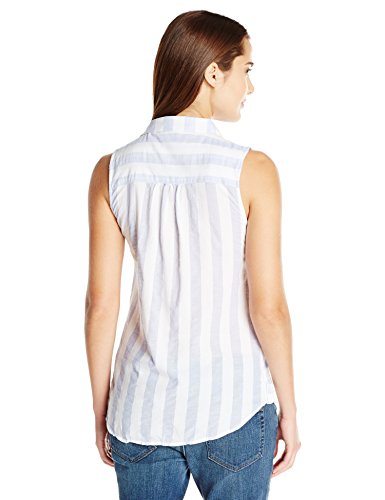 Classic styled striped button front sleeveless shirt