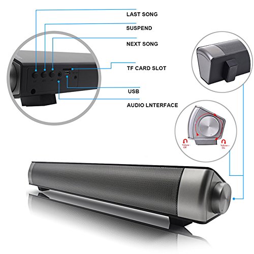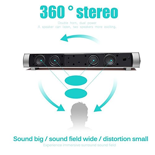 TopOne Bluetooth soundbar is designed with built-in subwoofer, powered by 2 x 5 W drivers.Bring you double enjoyment of ears and eyes when you see a video!