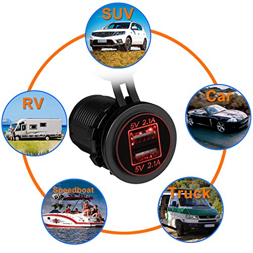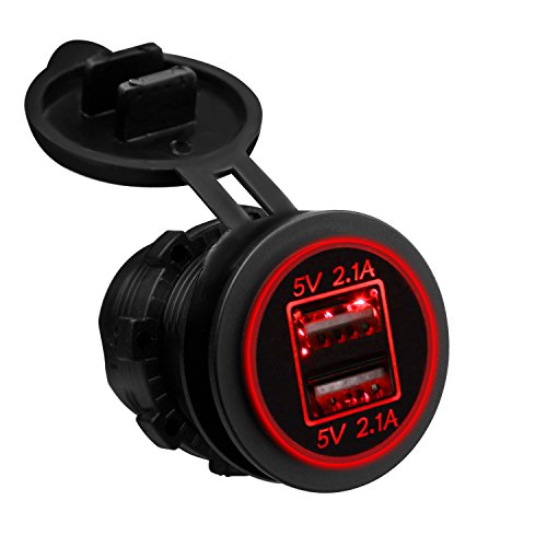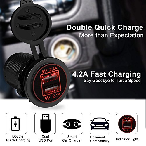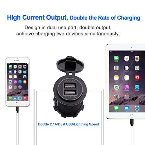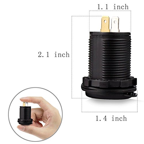 Specification: Connecting Type: Socket Charger Power Input: DC 12V-24V USB Output Voltage: 5V Output Current: 4.2A MAX Power: 22W Waterproof Grade: IP66 Item Dimension: 2.13' x 1.46'