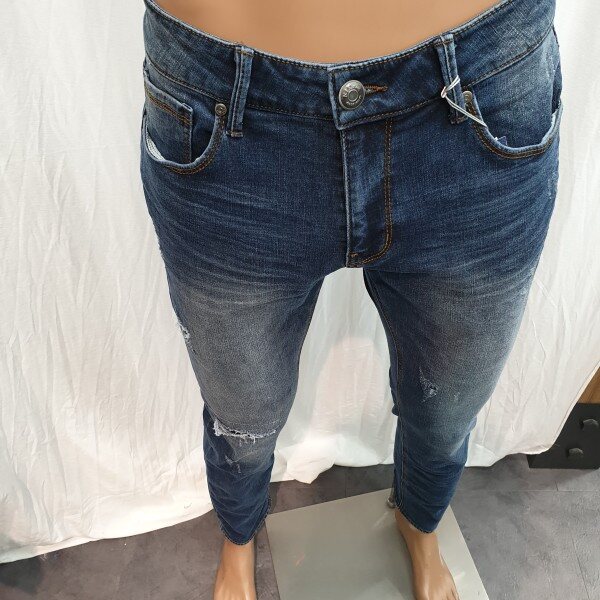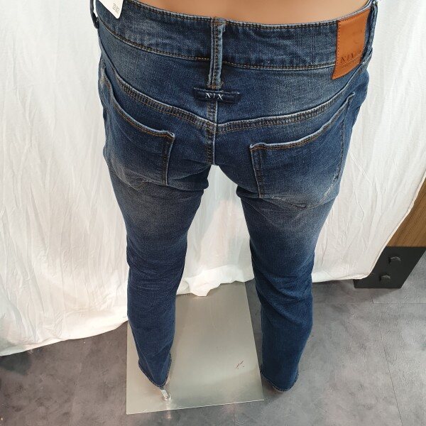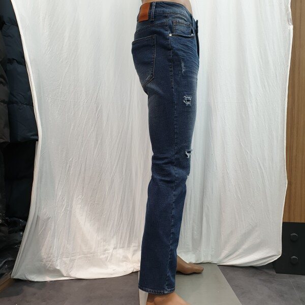 2018년 신상입니다. NMF DDN134의 기모버전으로 베이지 컬러가 은은하게 올라오는 미디움 인디고 컬러와 강한 스톤워싱, 고급스러운 엠보캣과 구제위 스티치 장식까지 다양한 워싱이 들어간 스타일로 뒤허리 안쪽에 밴딩처리가 되어있어 허리쪽에 부담이 없고 한층 더 편한 착용감을 느낄수있는 아이템입니다. 직원이 예뻐하는 제품입니다~추천!