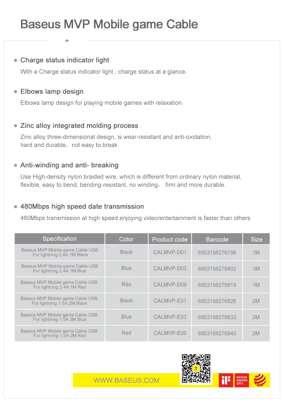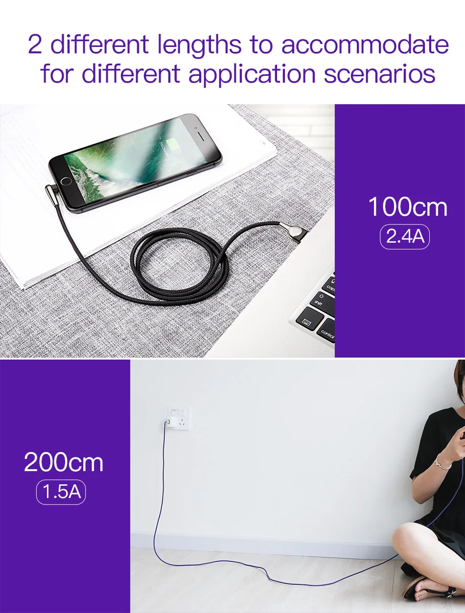 Length/Output Current:1M / 2.4A, 2M / 1.5A