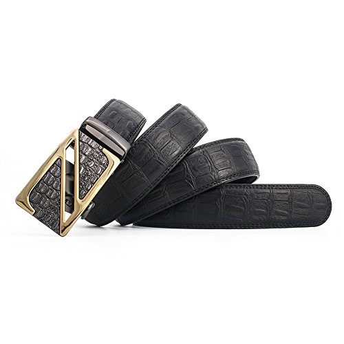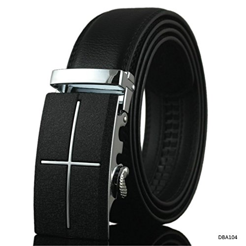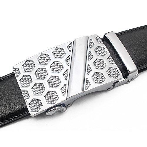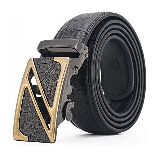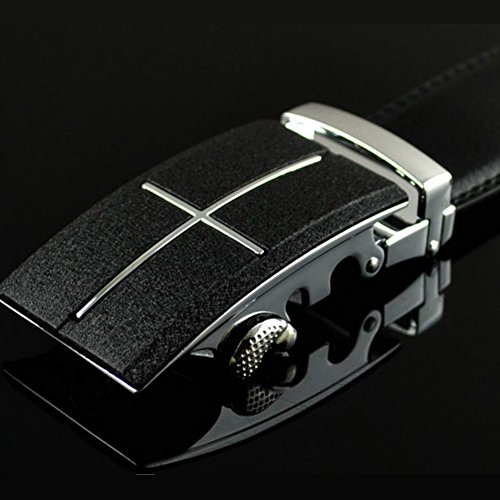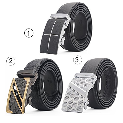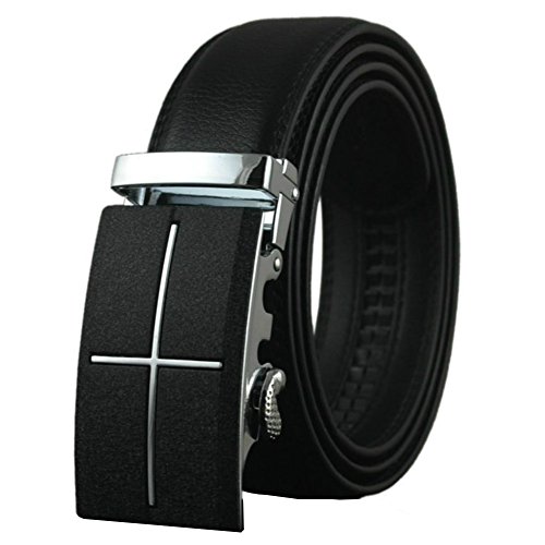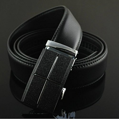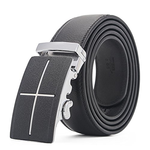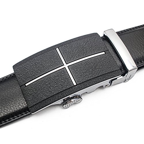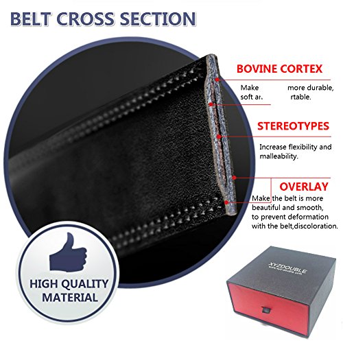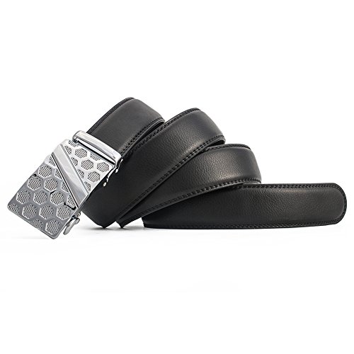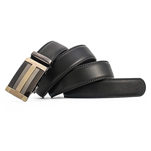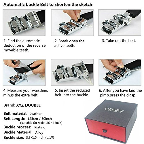 | XYZDOUBLE Men's Leather Belt Sliding Buckle Black Automatic Ratchet with Gift Box-35mm Wide |