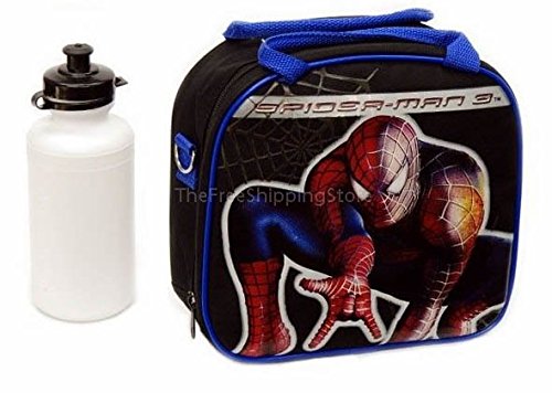 -. Feature : Spiderman Black Lunch Bag / Approximately size: 8.9" x 9.0" x 3.10" / Includes: Water bottle / Adjustable Shoulder Strap