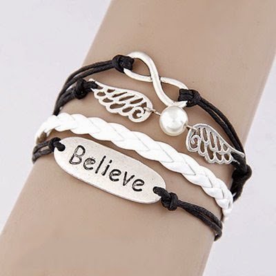 Gelang Korea Multi Charm Peace, Wings & Believe