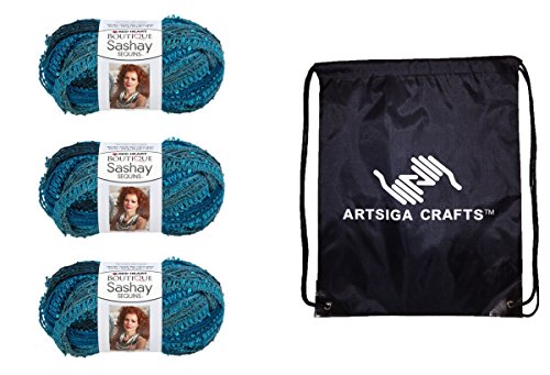 Bundle Includes 3-Pack of Red Heart Boutique Sashay Sequins Yarn Mediterranean E782S-1948 with 1 Artsiga Crafts Project Bag