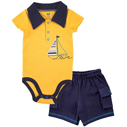 Title : Hudson Baby Short Sleeved Bodysuit and Cargo Shorts, Sailboat, 6-9 Months