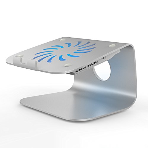 -. Feature : One-piece high quality Aluminum with silicone feet design provides solid stability, cable organizer ring behind routes wires neatly. 360 Degrees rotating stand provides multiple operating angles. / Positions the LCD at eye level to relieve neck and shoulder strain. / High Performance Fans: Built-in one 140mm silent fan that dissipate heat away from the computer, provide superior airflow, spinning at just over 1,200 RPM. / Extra USB Ports: Built-in 4-port USB hub allows for connecting more USB devices. / Strong construction accommodates 12-17 inch notebook computers or laptops.