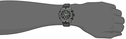 ReleaseDate : 2014-05-08 Studio : Versus by Versace Publisher : Versus by Versace Binding : Watch Product Description Black ion-plated stainless steel case with a black (calfskin) leather strap. Fixed etched black ion-plated bezel. Black dial with luminous hands and index hour markers. Arabic numeral marks the 12 o'clock position. Minute markers. Tachymeter around the outer rim. Dial Type: Analog. Luminescent hands. Chronograph - two sub-dials displaying: 60 second and 30 minute. Date sub-dial at the 6 o'clock position. Quartz movement. Scratch resistant mineral crystal. Solid case back. Case diameter: 45 mm. Case thickness: 13 mm. Round case shape. Band width: 22 mm. Tang clasp. Water resistant at 50 meters / 165 feet. Functions: chronograph, date, hour, minute, second. Casual watch design. Versus By Versace Aventura Chronograph Black Dial Black Leather Mens Watch SOC030014. 0
