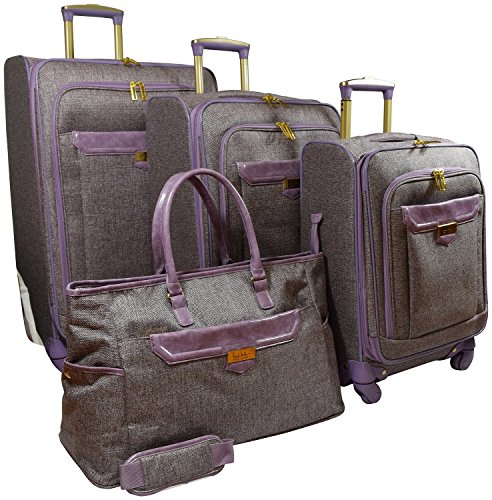 -. Brand : Nicole Miller -. Department : mens -. Feature : Nicole Miller set of 4 / Cotton canvas / Telescopic push button handle system / 360 degree spinner wheel system / Fully lined interior -. Model : 3585 -. PackageQuantity : 4 -. ProductGroup : Apparel -. ProductTypeName : LAGE -. Title : Nicole Miller Jardin 4 Piece Set