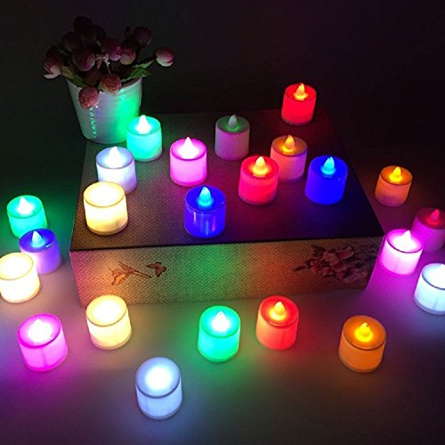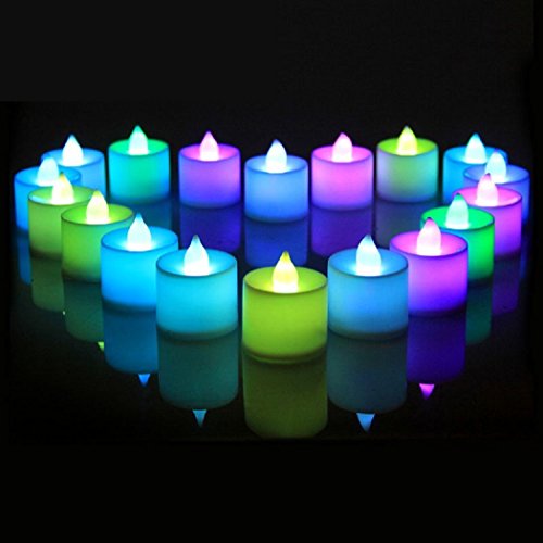 24Pcs Electric Color-changing LED Tealight Bright Mood Candle Realistic Battery Operated Tealight for Wedding Party Confession Festival Decoration Fake Candle (Multi-colored)