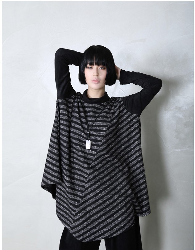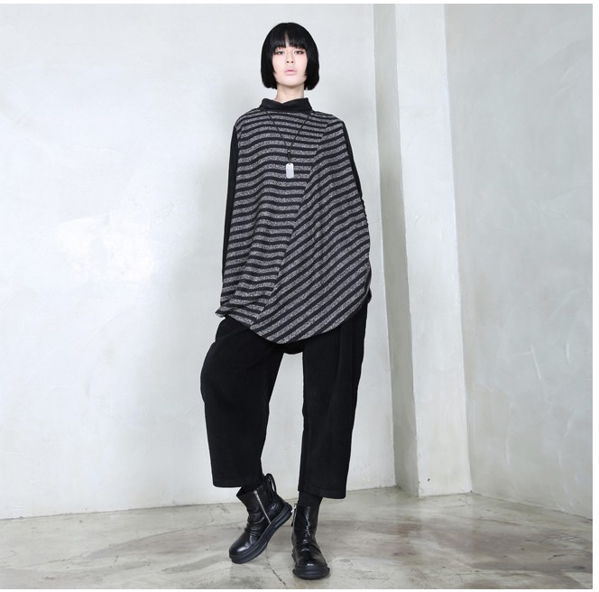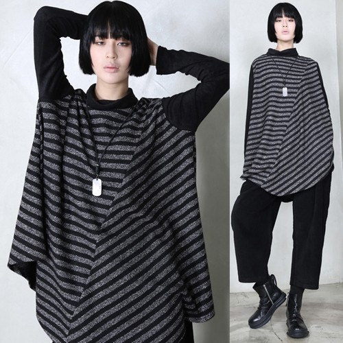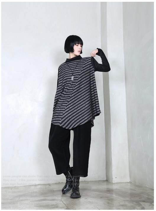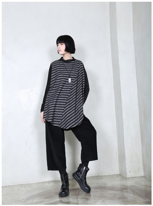 商品名:チュニック レディース トップス 長袖 ボーダー 秋 冬 2017 モード系 個性的 40代 ファッション