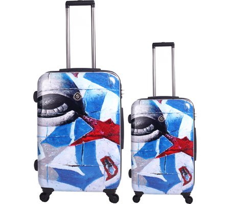Binding : Apparel Product Description This multi-colored luggage set features a brilliant artistic polycarbonate exterior with a special matte finish. The fully lined interior has multiple pockets and zippers while the multi-directional spinner wheels provide a convenient mobility. Carrying handle: Aluminum handle with soft rubber grip Impact locking aluminum telescopic handle system with push-button. Built-in TSA combination lock protects valuables. Pockets: Large pocket, 2 small pockets. 2" Expandable Compartment. 0