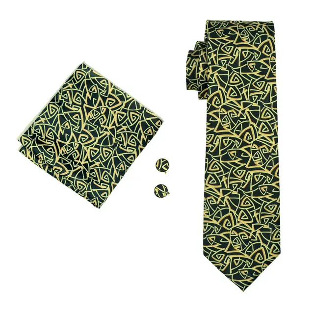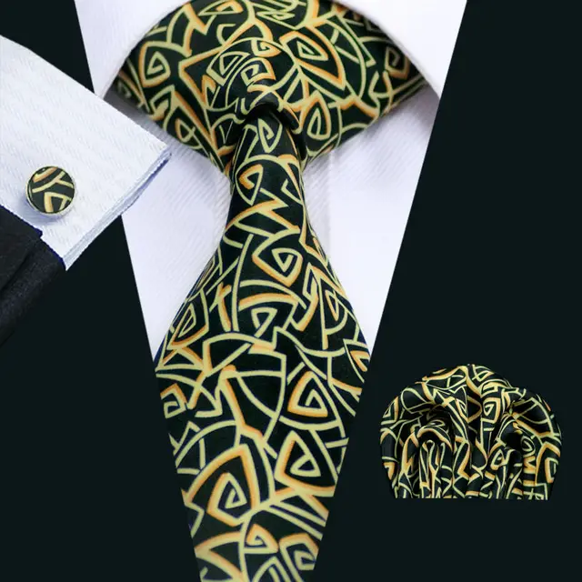 LS-1298 새로운 도착 남성 인쇄 실크 넥타이 고품질 브랜드 디자인 노란색 넥타이 목에 두르는 손수건 커프스 세트 웨딩