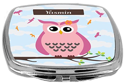 Rikki Knight Cute Pink Owl on Branch with Personalized Name Design Compact Mirror, Yasmin, 17 Ounce