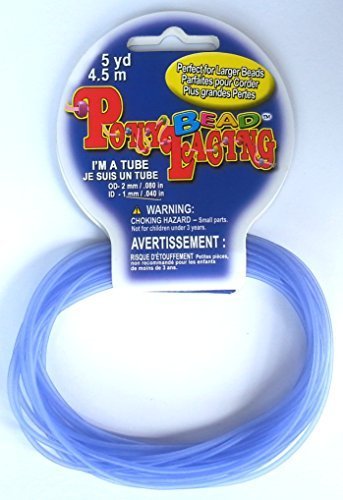 Pony Bead Lacing is great for kid and adult artists. The lacing cord is a hollow, soft PVC plastic tube. The tubing has a 2mm (approximately .080 inches) outside diameter, inside diameter of 1mm (approximately .040 inches) and measures 5 yards long. Pony Bead Lacing is ideal for elementary classrooms, children's crafts, jewelry making and is also commonly used as a sculpting medium. A wire can be inserted so that the lacing can hold it's shape (20 gauge wire is recommended, which is about the thickness of a standard paperclip). A two inch Pony Bead Connector is included which is taped to the inside of the paper card. Cut the connector into smaller .25 inch (6mm) segments. Insert into opposing ends of the hollow lacing. Latex free. Not for children under 3 years of age. 5 yards. Latex free. Hollow tubing. Inside diameter 1mm. Outside diameter 2mm. Connector included.Feature