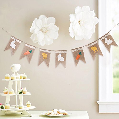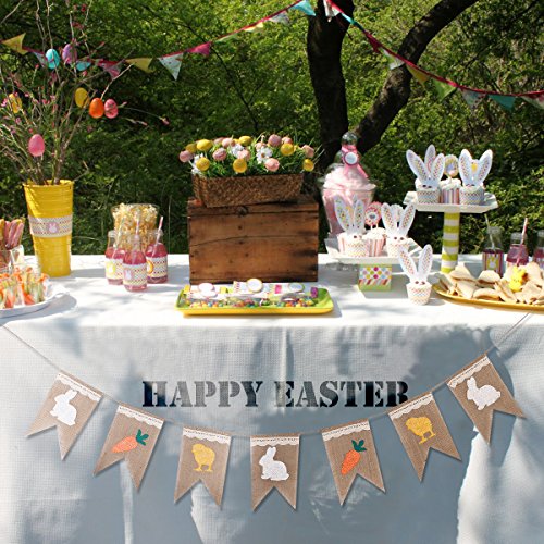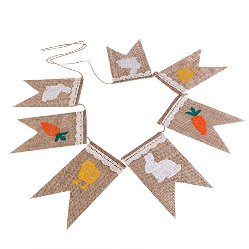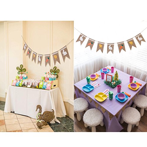 Tinksky Easter Decoration Burlap Bunting Banner Rabbit Carrot Print for Party Birthday Supplies