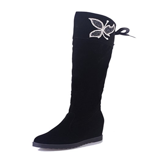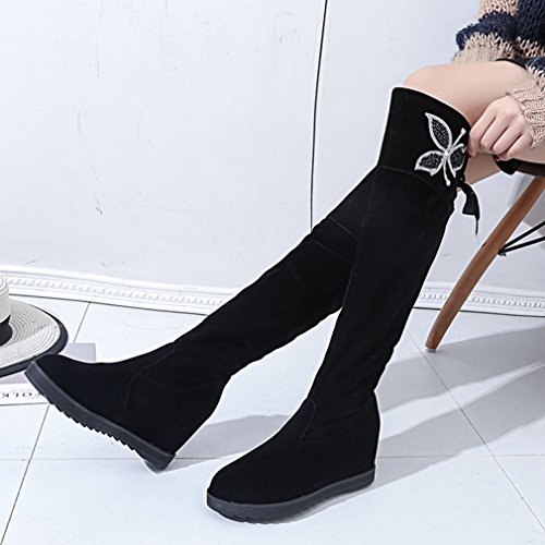 (Btrada)/Women's/Boots/DIRECT FROM USA/Btrada Womens Suede Sexy Over The Knee Thigh High Boots Black Studded Chunky Hidden Heels Velve...