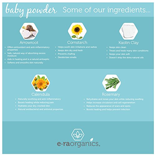 KEEP YOUR BABY COMFORTABLE OR YOUR MONEY BACK. Gentle, nutrient rich dusting powder with Organic Arrowroot Powder, Cornstarch, Kaolin Clay, Calendula Extract and Rosemary Extract.
