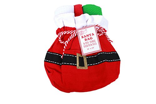 Santa Bag with 3 Dishtowels Gift Set