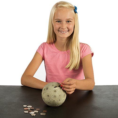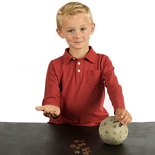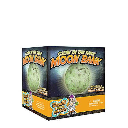 Studio : Discover with Dr. Cool Publisher : Discover with Dr. Cool Binding : Toy Product Description Watch your savings grow astronomically with this glow-in-the-dark moon bank! This realistically textured surface looks just like the lunar surface. Approximately 4” in diameter, this moon bank comes with a real meteorite specimen from space and includes an informational booklet that teaches children cool facts about the moon!