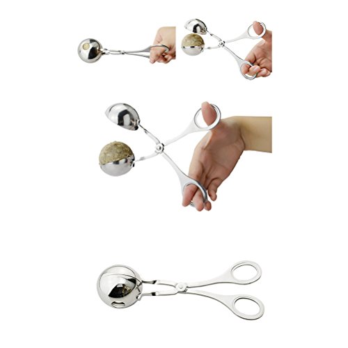 - Color: As shown. - Material: Stainless steel. - Size: About 16.5 x 7.5 x 3.5cm/6.5 x 3 x 1.4inch(LxWxH). - Made of premium stainless steel, it is safe, non-toxic, corrosion resistant and high temperature resistant. - Quickly forms and releases shaped meatballs with ease. Save your time. - Suitable for making melon baller, fish ball, meatballs, shrimp pills, rice balls, tofu balls, chinese food and cake balls. - Meat baller's surface raised granules can scoop meat more convenient and ensure no stick meat. Package Including 1 x Stainless Steel Meatball Maker Convenient Stuffed Meatball DIY Clip Meat Rice Ball Maker Mold Kitchen Gadget (Small) 0