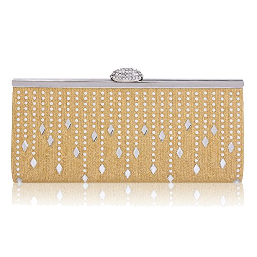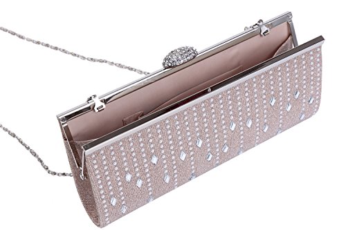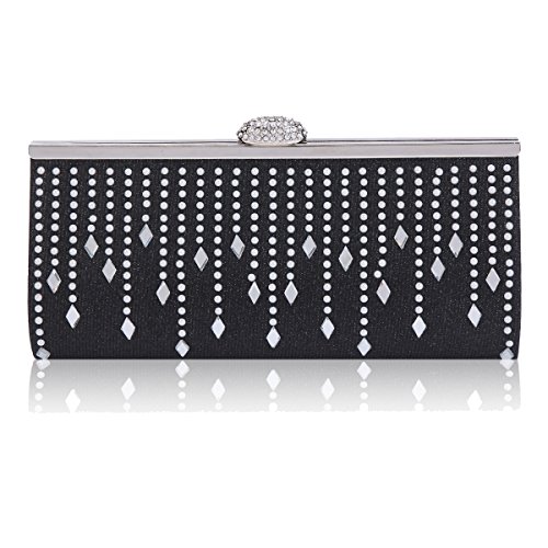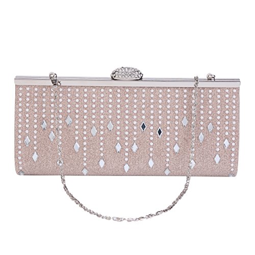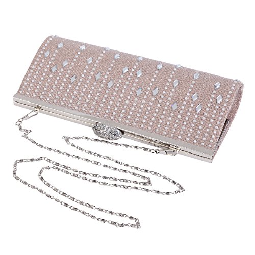 Product Description This elegant evening bag is the best choice for you in any occasion! Allover glitter design makes it the focus of people. The front is adorned with curtain-shaped beads. Fastened with a rhinestone snap. The top has metal frame wrapped. Inside is a main layer for you to carry phone, wallet and 1 small pouch to save tiny things such as keys. This bag can be clutched by hands or cross the body with detachable chain. Bag measurement approximately: length 25cm (9.8 inches); width 4cm (1.5 inches); height 11cm (4.2 inches); shoulder strap 120cm (46.8 inches). 0