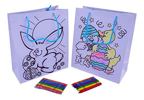 Easter Gift Bag Set with Crayons (Color Your Own Activity Bag) - Pack Of 2 - Great for Kids, Alternative to Easter Basket , Treat Bags, Party Favors and More!